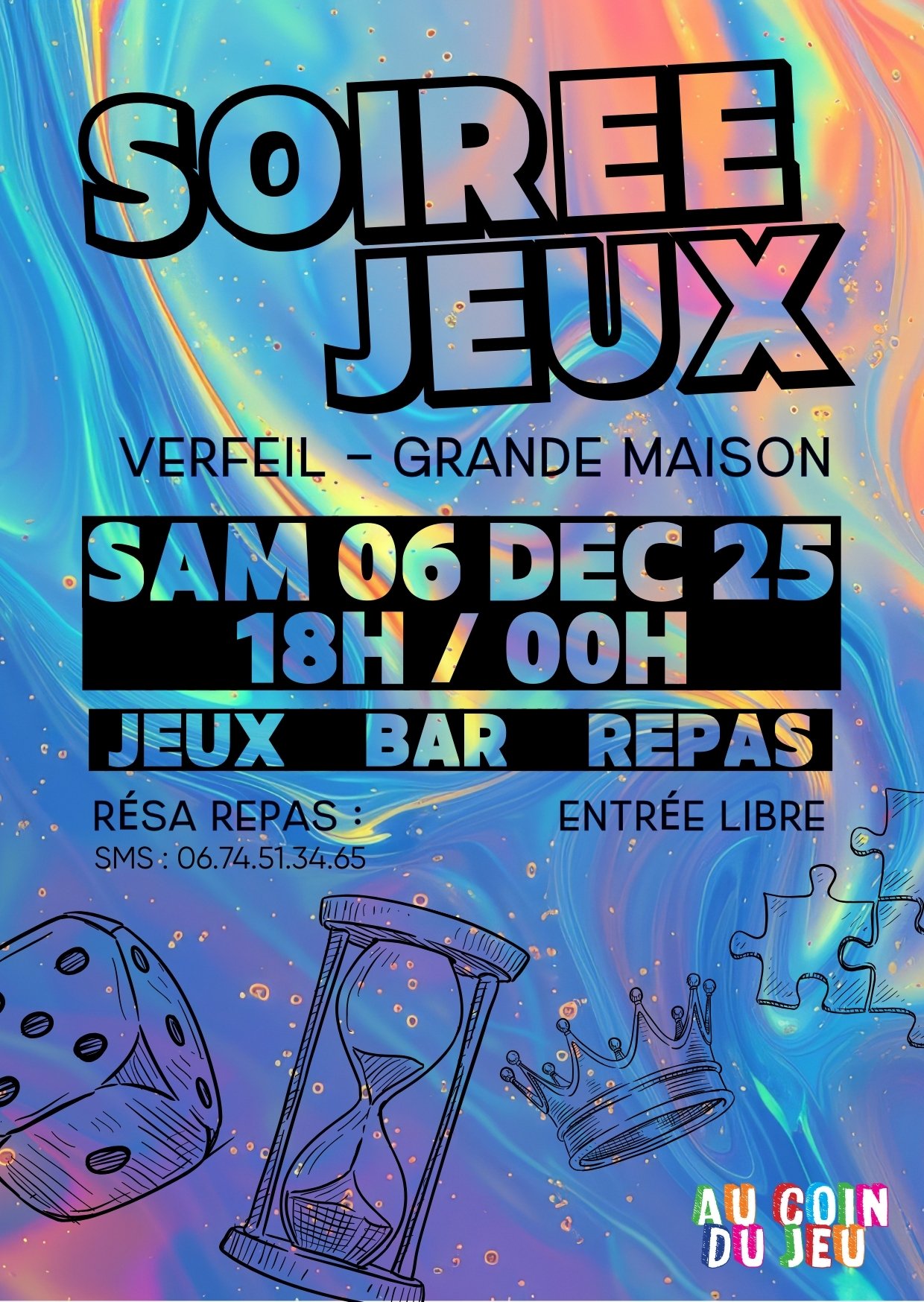 [AuCoinDuJeu.Bulletin] Soirée jeux : sam. 06 déc - 18h/00h - GRANDE MAISON Verfeil